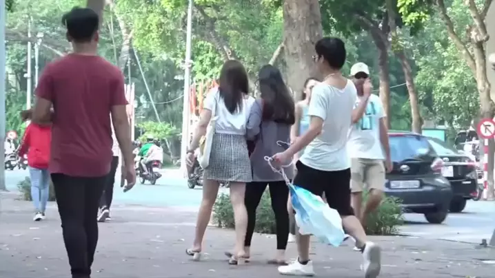 Kantong sampah tergantung di bestie dan hampir membuat mereka tertawa.