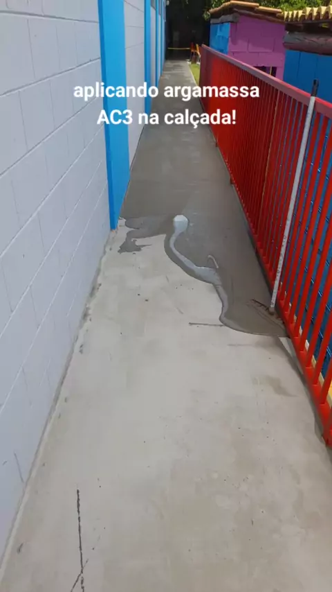 aplicação de argamassa Ac3 na calçada escola novas ideias