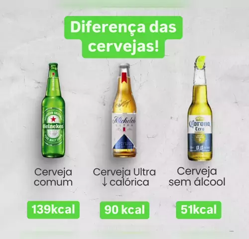 Cerveja tradicional * Tem mais calorias e álcool * Tem menos água na fórmula * Tem sabor mais intenso * É uma opção para quem não está preocupado com calorias Cerveja light * Tem menos calorias e álcool do que a cerveja tradicional * Tem mais água na fórmula * Tem sabor suave e é refrescante * É uma opção para quem está de dieta Cerveja zero álcool * Não contém álcool * É uma opção para quem quer evitar ou diminuir o consumo de álcool * Tem menos calorias #cerveja #equibrio