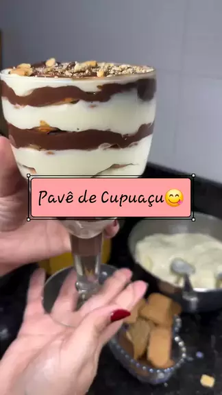 Pavê de Cupuaçu Fácil😋 Ingr: • 1 kg de polpa de cupuaçu • 2 latas de leite condensado • 2 caixinhas de creme de leite • 100 g de leite em pó (Ninho) Ganache: • 150 g de chocolate ao leite • 150 g de chocolate meio amargo • 1 caixinha de creme de leite Modo de Preparo: 1. Em um liquidificador, bata a polpa de cupuaçu, o leite condensado, o creme de leite e o leite em pó até obter um creme homogêneo. 2. Despeje o creme em um refratário e reserve. . . ● 📽@thalitalee