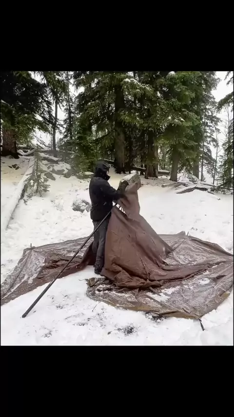 Hot Tent Camping In A Snowstorm.#camp#camping#bushcraft#build#ourdoor#survival#shelter#viral# More