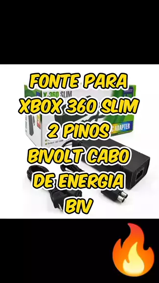 Fonte Para Xbox 360 Slim 2 Pinos Bivolt Cabo De Energia Biv