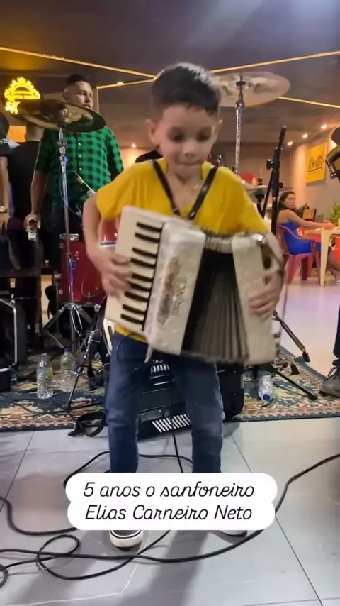 Com 5 anos de idade Elias Carneiro Neto tocando sanfona