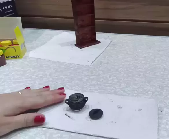 pintura do nosso mini caldeirão do projeto mini casa #minidolls #miniaturas #miniature #caldeirao #pintura