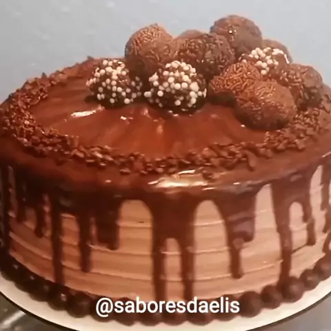 cake de chocolate com recheio de brigadeiro gourmet cacau 100% e brigadeiro 4 leites com chocoball e gotas de chocolate... #saboresdaelis #elisandrafirmo