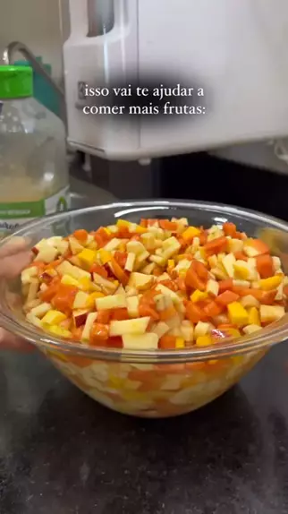 salada de frutas pode ser um excelente aliado na sua alimentação do dia a dia 🥭🍌🍏 se quer aumentar o consumo de frutas, experimenta já deixar tudo cortadinho na geladeira! claro que podem ser as frutas separadas também, mas em forma de salada acho ainda mais gostoso! uso sempre mamão, banana, maçã e manga! para mim, são frutas que combinam super bem. Créditos: @nossacasaerotina ✨✨ #cozinha #saladas #saladadefrutas