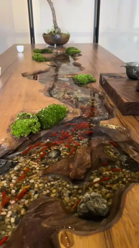Levante 100 peixes na mesa de chá do chefe, e o chefe vai me dar um aumento de salário # teatable # table # coffeetable # diningtable # fish # tea # woodentable # desk # drinktea