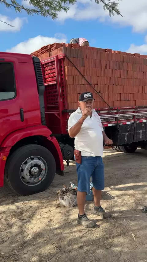 Descarregando tijolo para a construção da minha casa