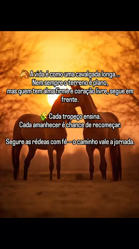 🐎 A vida é como uma longa cavalgada… Nem sempre é fácil, mas quem tem alma firme e amor pelos caminhos, segue mesmo nos dias difíceis. ⠀ 🌅 Que hoje você segure as rédeas com fé e lembre: Cada passo tem um propósito. Cada tropeço traz força. ⠀ 💬 Comente com “🐴” se essa mensagem tocou seu coração. 📲 Compartilhe com alguém que também carrega a alma livre de quem ama cavalos! #MensagemDoDia #CoraçãoEquestre #CavalgadaDaVida #ReflexãoRural #Equuspassion #BomDiaComSentido #AmorPorCavalos #Reels...