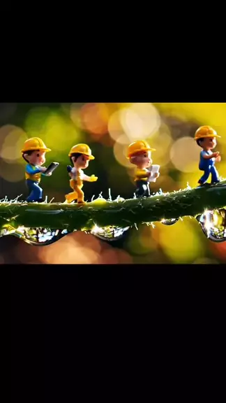 Trabalhadores em miniatura enfrentam um desafio no topo de uma planta gigante. #ai #aiart #miniature