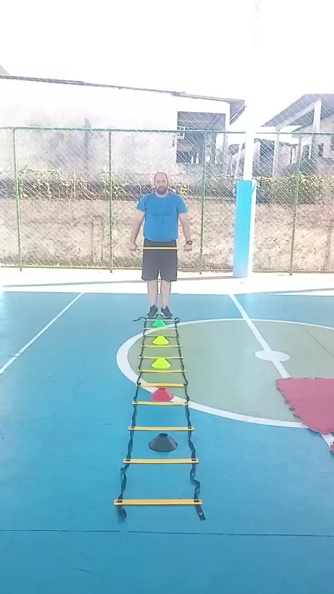 treino na escada de agilidade com bases do polichinelo