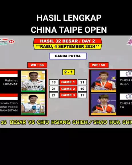 Hasil lengkap China TAIPE open #snacksports #trendsports #SPORTSCLUBINDONESIA #komenolahraga