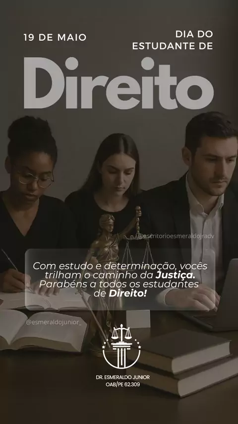 Hoje celebramos a força, a dedicação e o compromisso dos estudantes de Direito, que sonham com uma sociedade mais justa e igualitária. Feliz Dia do Estudante de Direito! Que essa jornada seja de muito aprendizado, coragem e transformação! #DiaDoEstudanteDeDireito #FuturoDaAdvocacia #Direito #Justiça