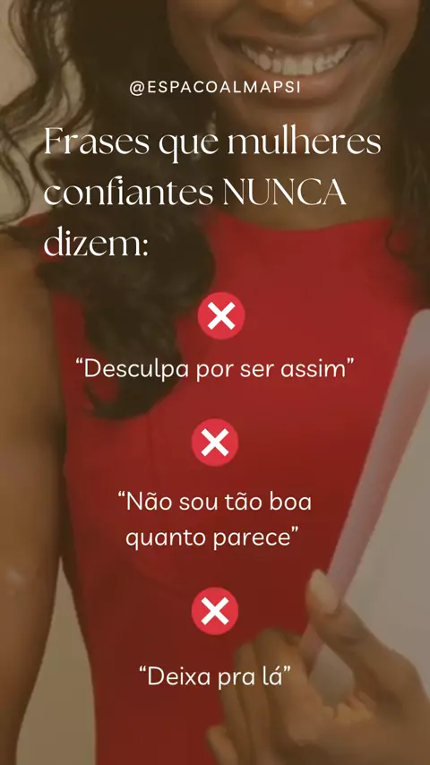 Perfeito 😊 Aqui está somente a legenda – Opção 1: Mulheres confiantes nunca dizem: ❌ “Eu não sou capaz” ❌ “A culpa é sempre minha” ❌ “Preciso agradar para ser aceita” Confiança é construção, não perfeição. 💭✨ #MulherConsciente #Autoconfiança #AmorPróprio #CuraEmocional #Psicanálise