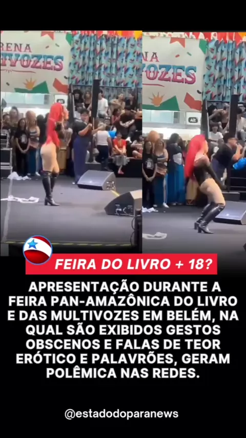 Polêmica na Feira do Livro em Belém Imagens mostram uma apresentação durante a Feira Pan-Amazônica do Livro e das Multivozes em Belém, na qual são exibidos gestos obscenos e falas de teor erótico. Um pai insatisfeito comentou que a escola do filho fez um passeio para as crianças conhecerem a Feira para induzir aonhabito da leitura, e chegando lá se depararam com esse tipo de apresentação. #estadodopará #pará #belem #belemdopara #ananindeua