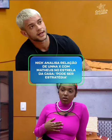 Em papo com Thália no quarto laranja, Nick Cruz fala sobre Unna X e comenta que o fato de estar em um casal com Matheus Torres a fortalece. Em seguida, diz: "ela tem cara de santa, ela tem postura de santa, mas, para mim, ela não é santa" 👀 #EstrelaDaCasa