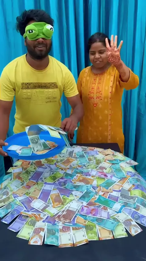 Tem que pegar o máximo de dinheiro possível de olhos vendados e com uma espátula kkk #Comédia #humor #brincadeiras #vamosrir #chalenge