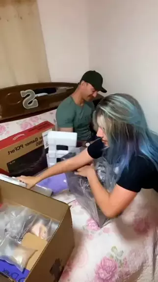 Jovem do cabelo azul abre encomenda misteriosa | #humor #paiefilha #gamer #pc