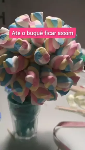 Como eu fiz aquele buquê famoso de marshmallow! A bola de isopor está colorida porque os meus pequeninos acabaram pintando ela e furando antes. Mas mesmo assim deu super certo! #comosefaz #estreladafamília #buque #buquedemarshmallow #marshmallow