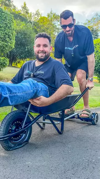 Fiz um carrinho de mão ELÉTRICO e quase me QUEBREI! 🤕💥 Acho que ele não foi feito pra carregar capivaras de 100KG! 🏋️♂️ Comenta aí que outra gambiarra vocês querem que a gente faça! 🤪