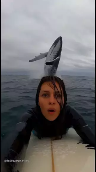 EU ESTAVA NA PRANCHA… E UMA BALEIA SALTOU ATRÁS DE MIM 😱🐋 Eu só queria surfar tranquila, quando do nada senti o mar mudar… e essa cena absurda aconteceu atrás de mim. Nunca vou esquecer esse dia. #Baleia #Surfe #MarAberto #eusoujanainaalves #Oceano