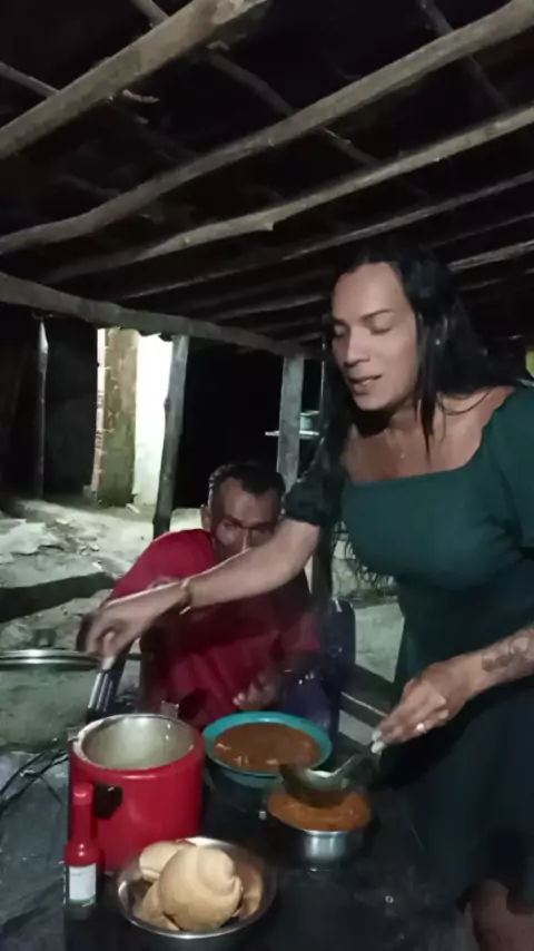 colocando a janta da noite