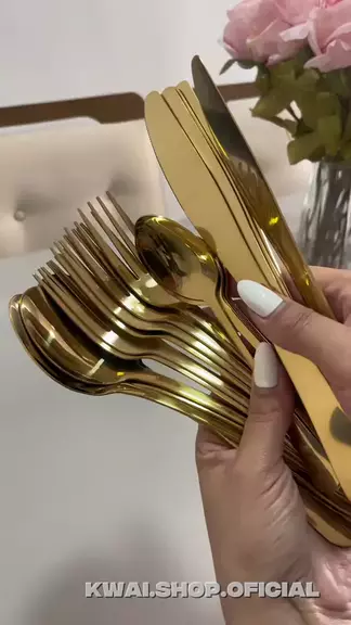 JOGO DE TALHERES 24 PEÇAS AÇO INOX COZINHA GARFO COLHER FACA OURO DOURADO #jogo #talheres #dourado