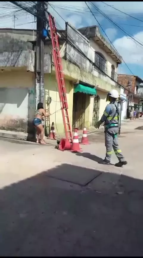 mulher surta com os trabalhadores da equatorial