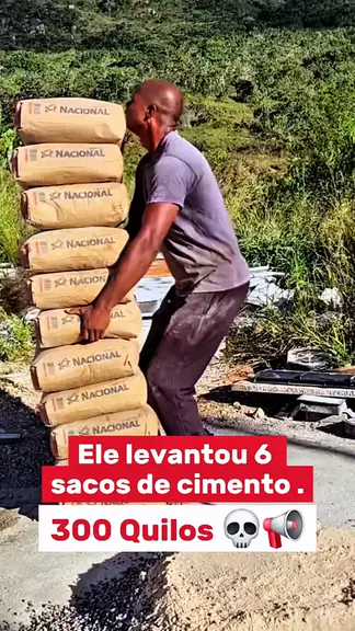 O #trabalhado @Jordao impressiona todos ao levantar 6 sacos de cimento de uma só vez. Superando o recorde de @Bitelo natural . #gym #bitelo #natural #pedreiro