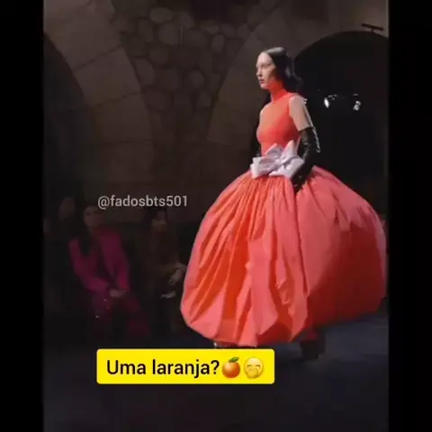 pra quem disse que suga não olhou nenhuma modelo está enganado haha a última modelo ele perseguiu sim com os olhos kkk será se ele pensou que fosse uma laranja?🤭🍊😆 #suga #sugabts #ARMY #BTS #ARMYs
