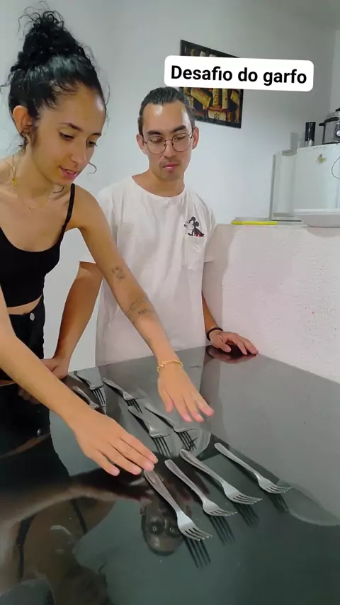 Desafio do garfo, sera que ele acertou? #humor #casal #desafio