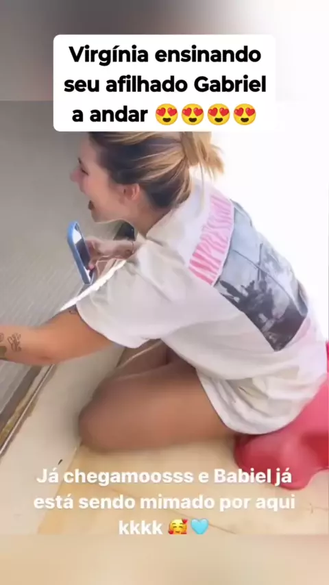 Virgínia ensinando seu afilhado Gabriel a andar