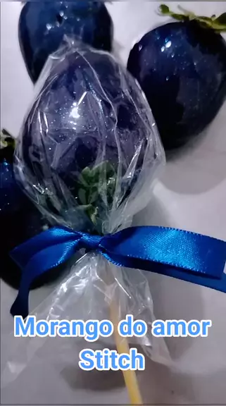 Morango do amor Morango do amor Stich ou morango do amor oceano, que lembra a jóia do coração azul do filme Titanic. Também pode ser usado no dia dos pais que está se aproximando. #morangodoamor #morangoazul