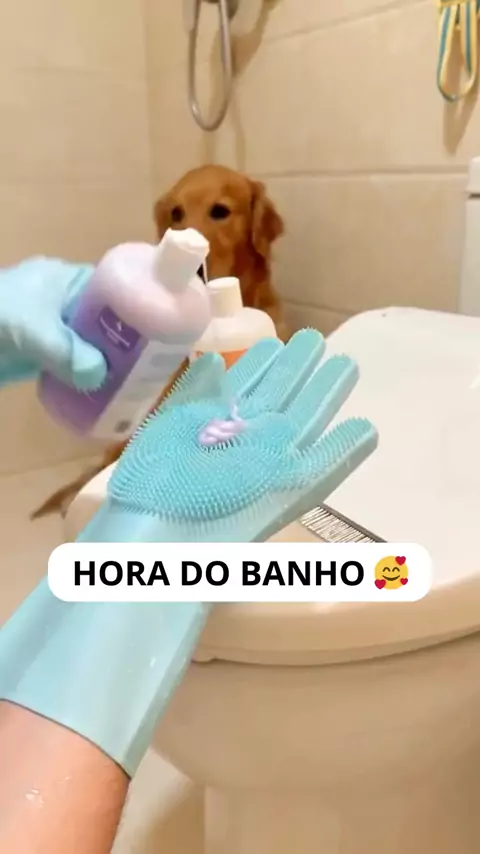 Luva para banho de cachorro 🐶🛁 Ajuda a espalhar o shampoo, remove pelos soltos e faz uma massagem suave enquanto limpa. Garanta para o seu pet nos comentários 💬🐕 #pet #cuidadoscompet #cachorro #animais #banhopet