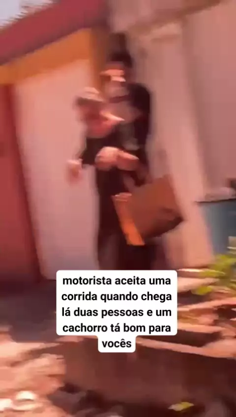 motorista aceita corrida quando chegar lá duas pessoas e um cachorro