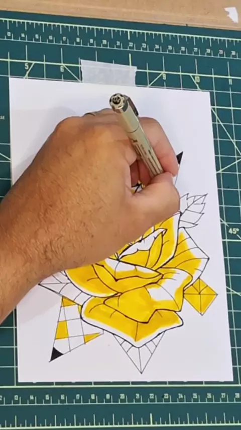 🎨 Rosa Amarela Estilo Geométrico | Arte Exclusiva no Papel #art #rosaamarela #ArteNoPapel #drawing @Evelim Manuela(O150001454962590)