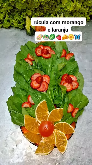salada de rúcula com flor de laranja e morangos Más