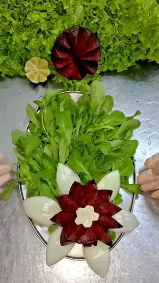 #maisviews salada de rúcula com cebola flor de beterraba crua com florzinha de mussarela e manga para finalizar