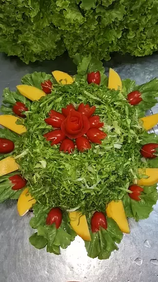 #Retrospectiva2024 #maisviews #viraliza salada de chicória com tomate cereja, rosa de tomate e manga salada para réveillon, salada decorada ,salada simples, salada fácil salada com frutas