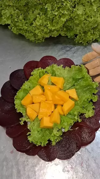 #maisviews #viraliza salada de beterraba cozida com folhas de alface crespa e manga, salada para o dia a dia, salada decorada, salada simples salada fácil, salada de legumes, salada com frutas, salada saudável