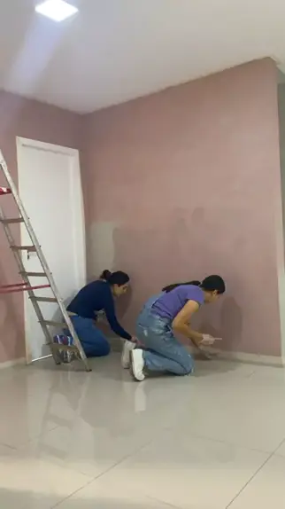 Pintando uma parede cimento queimado rosa 🥰 #diy #decor #interiordesign #pintura
