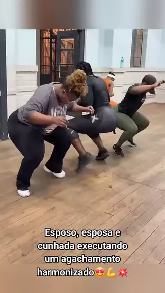 Esposo, esposa e cunhada executando um agachamento harmonizado. #fiqueemforma #treinoemcasa #fitdance #agachamento #nyawolomshini