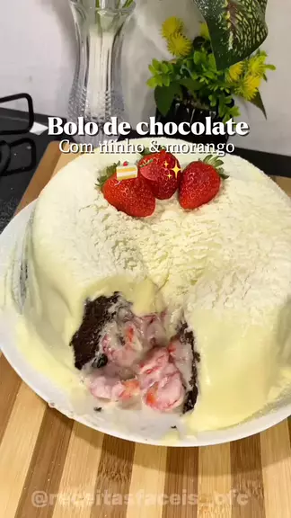 Bolo de chocolate com ninho e morango ππ #receitas #bolo #lanche #morango #fyp