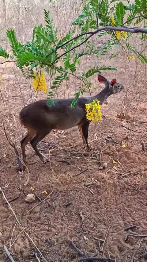 Veado Catingueiro comendo flor