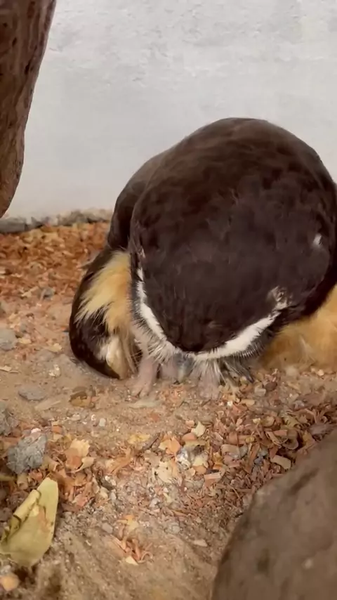 Filhote de murucututu sendo alimentado por sua mamãe