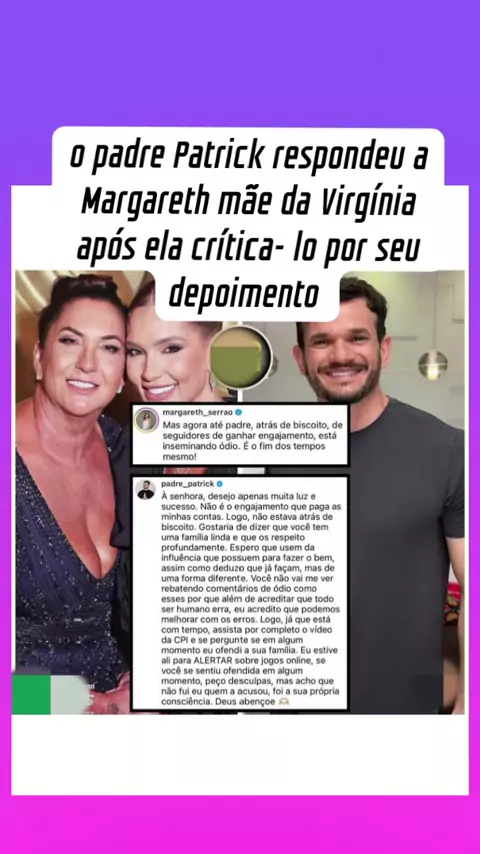 padre Patrick respondeu a Margareth mãe da Virgínia após ela crítica-lo por seu depoimento #viraliza #cpi #entretenimento