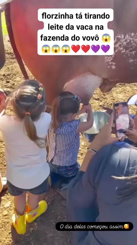 blusinha tá tirando leite da vaca na fazenda do vovô Leo 💜❤️😱 #turmadavirginia❤️