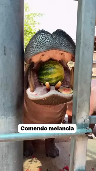 Hipopótamo comendo melancia. #premiokwai2025 #ipopotamo #animais