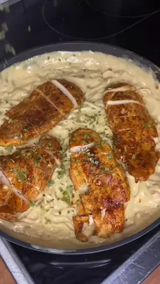 macarrão ao molho branco com filé de frango #frango #viraliza #Comida #almoço #Receita