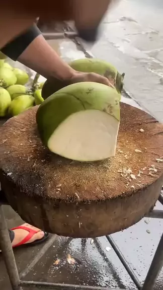descascando coco verde